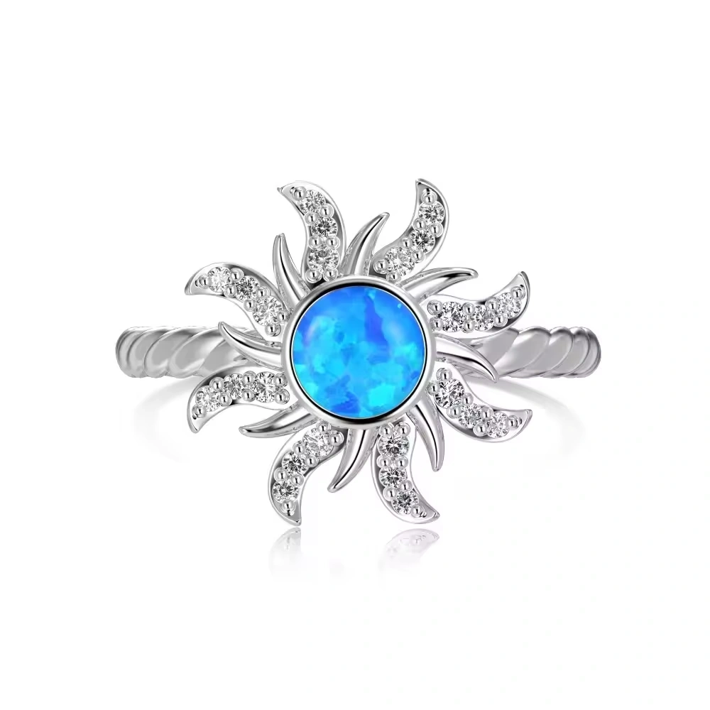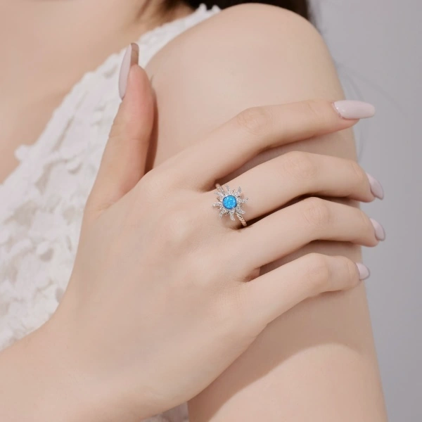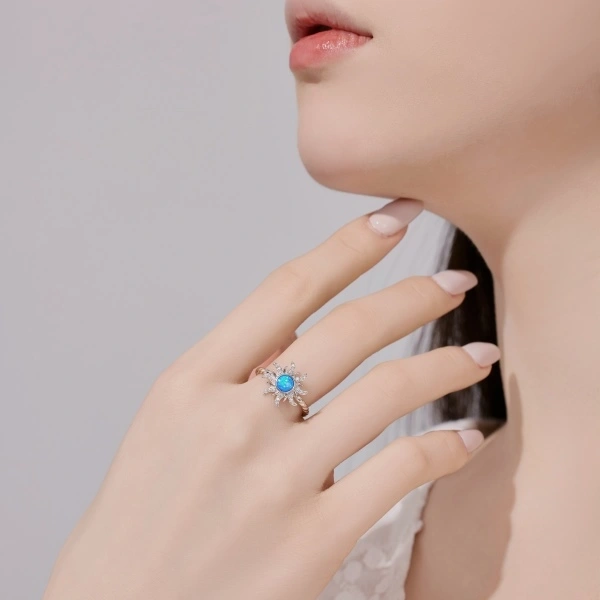 Mesmerizing and luminous, the Blue Aurora Opal Ring embodies celestial beauty in every detail. Handcrafted from 925 sterling silver and finished with rhodium plating for a lasting shine, this exquisite piece features a captivating 5 mm blue opal at its center — radiating hues of ocean and sky. Surrounded by Swarovski, the opal glows with iridescent charm, making this ring a perfect symbol of elegance and individuality.