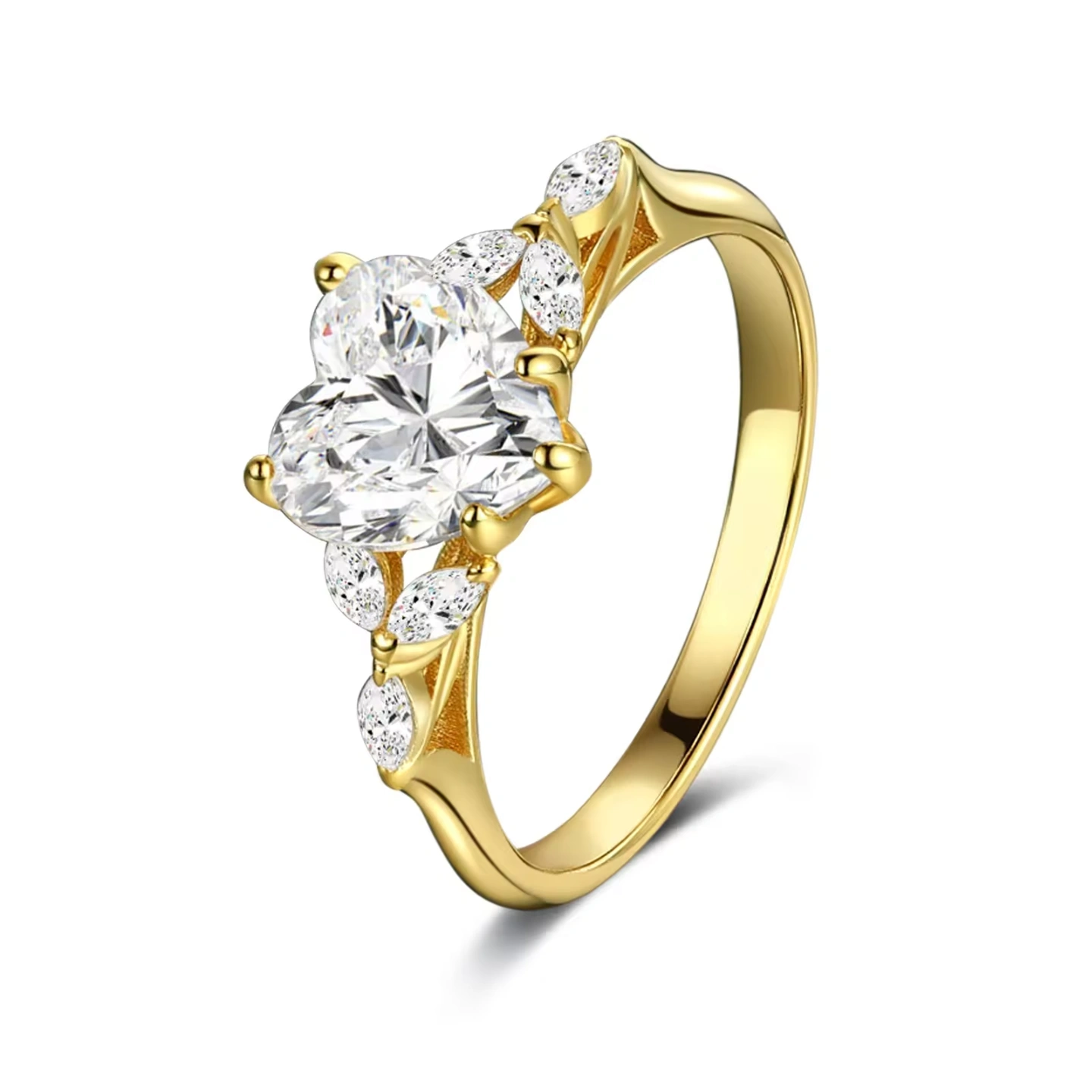 Gold plated Silver ring with heart shape cut Swarovski
