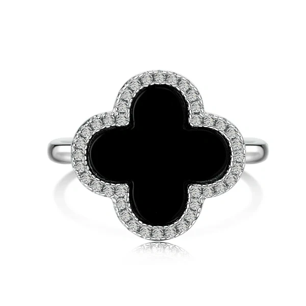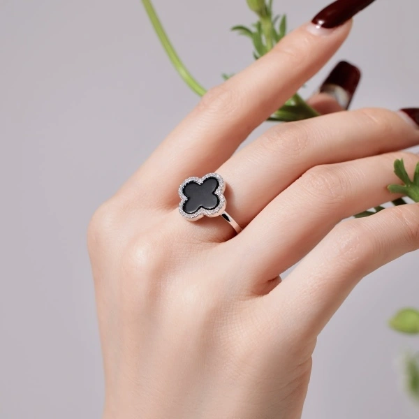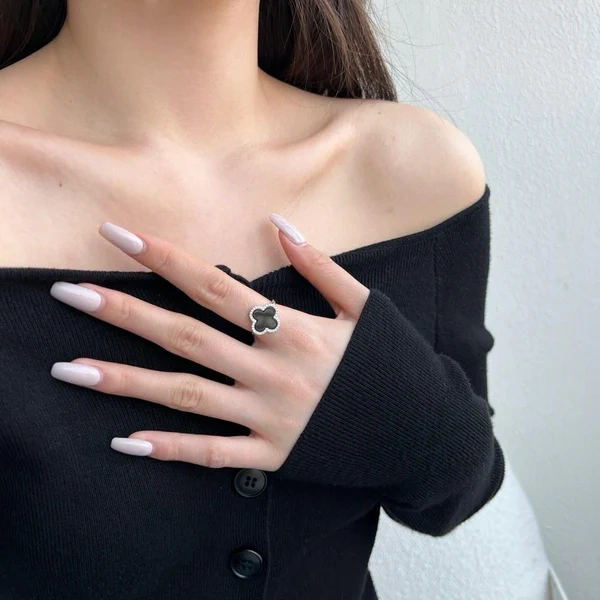 Bold yet timeless, the Grande Clover Ring in Black Shell is designed to make an elegant statement. Featuring a striking black shell inlay shaped into a classic clover motif, this piece symbolizes luck, beauty, and refined sophistication.