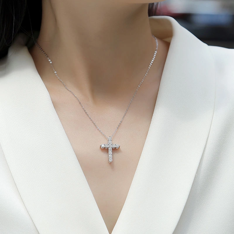 This Moissanite Cross Pendant, crafted from 925 Sterling Silver and plated with 18K Gold, offers timeless elegance for daily wear or gifting. Featuring a GRA-certified VVS1 clarity, D color Moissanite gemstone, it ensures unmatched quality and brilliance. The Round Brilliant Cut stone is secured with claw setting technology, enhancing its sophisticated design.