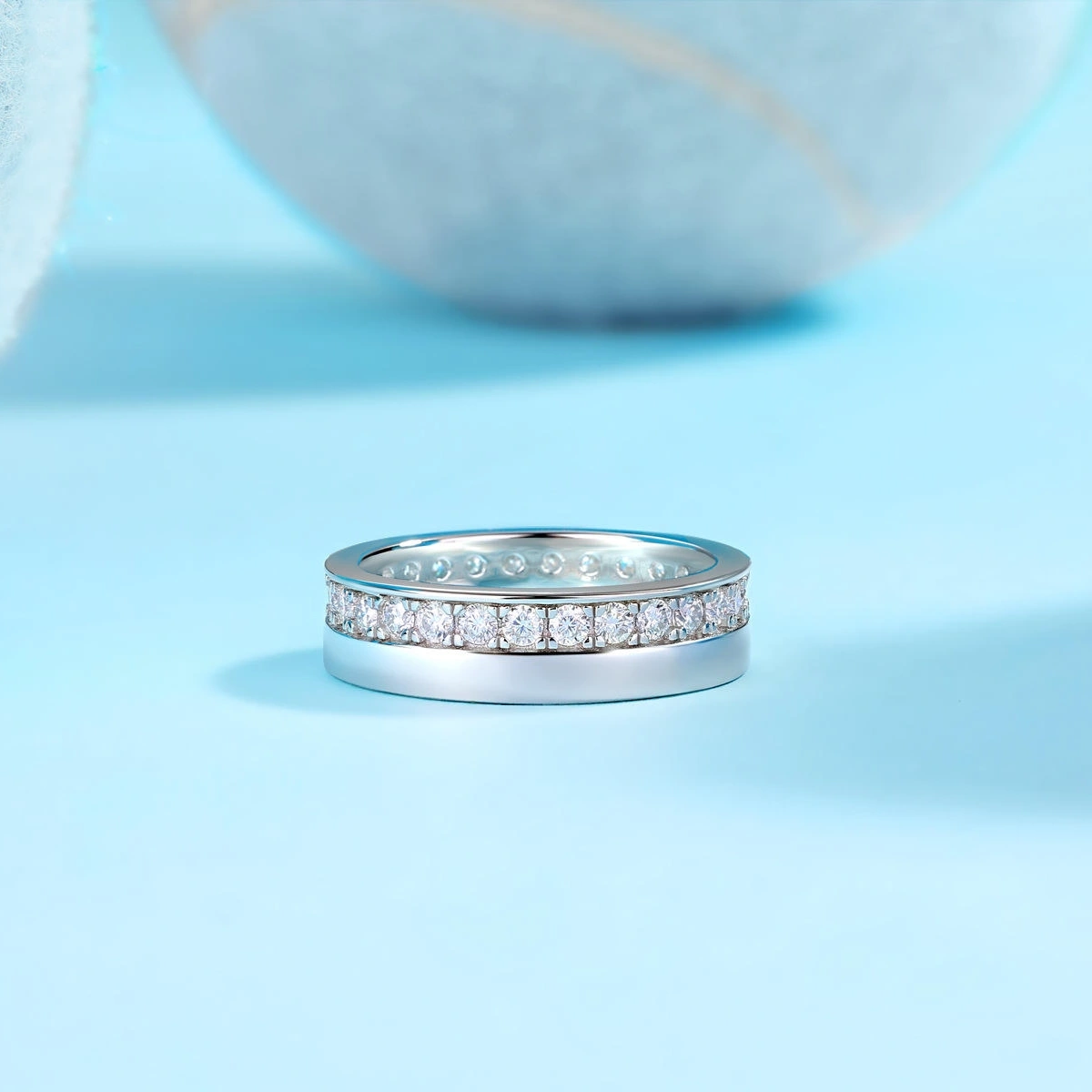 Timeless elegance meets modern luxury with this Moissanite Eternity Band Ring, crafted from S925 sterling silver and finished with a lustrous white gold plating. The continuous row of sparkling moissanite stones encircling the band symbolizes everlasting love and brilliance, making it a perfect choice for weddings, anniversaries, or special celebrations.