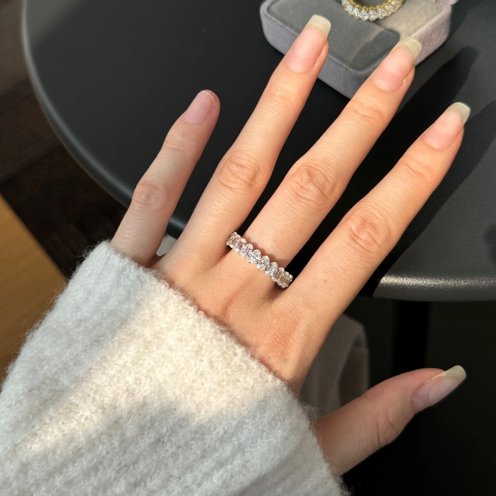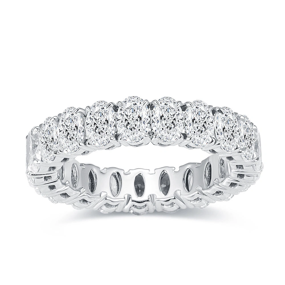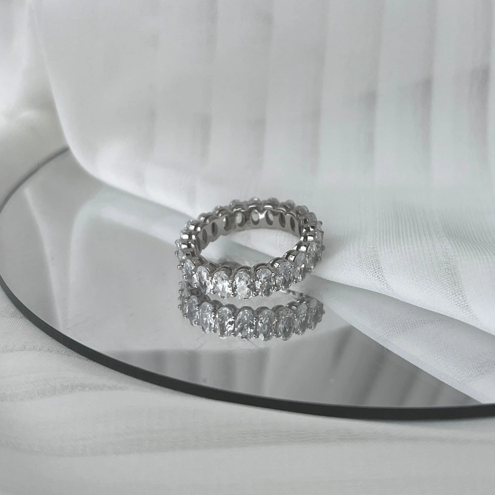A celebration of everlasting brilliance. This exquisite eternity band is meticulously crafted in solid 925 sterling silver and adorned with radiant oval-cut Swarovski crystals, each precisely set to create uninterrupted sparkle from every angle.