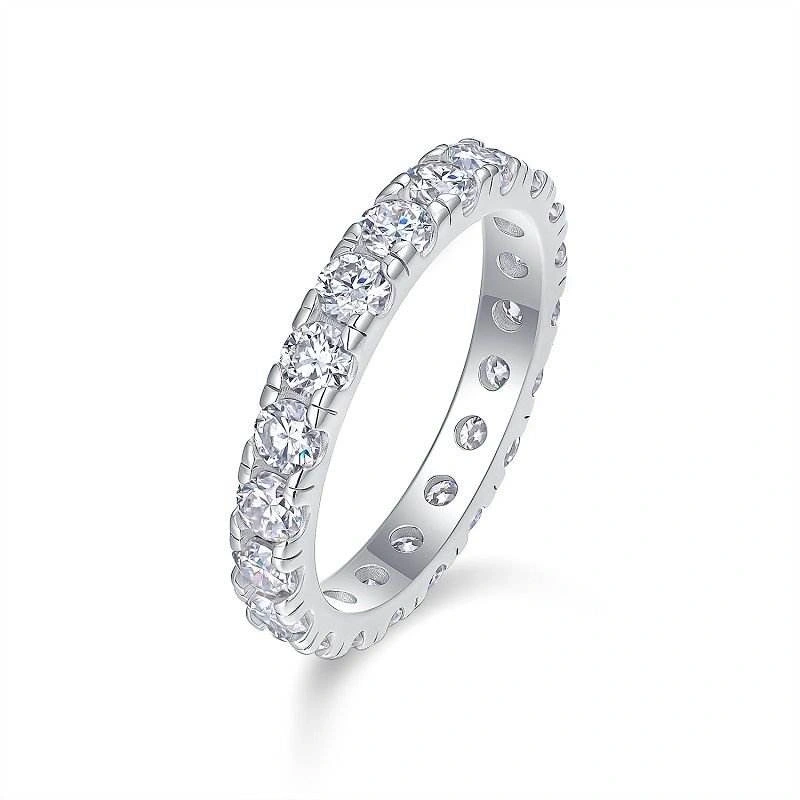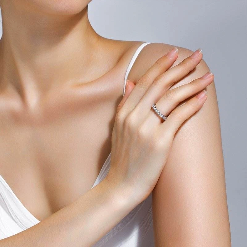 Sleek, modern, and elegantly minimal, this 3mm Moissanite Closed Band Ring is crafted from premium S925 sterling silver for lasting durability and shine. The slim band is adorned with a continuous row of sparkling moissanite stones, offering a refined, diamond-like brilliance that catches the light from every angle.