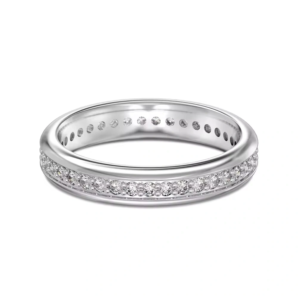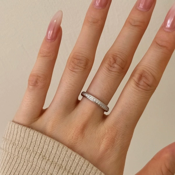 Its sleek silhouette and refined craftsmanship make it perfect as a wedding band, anniversary ring, or luxury stacking piece.