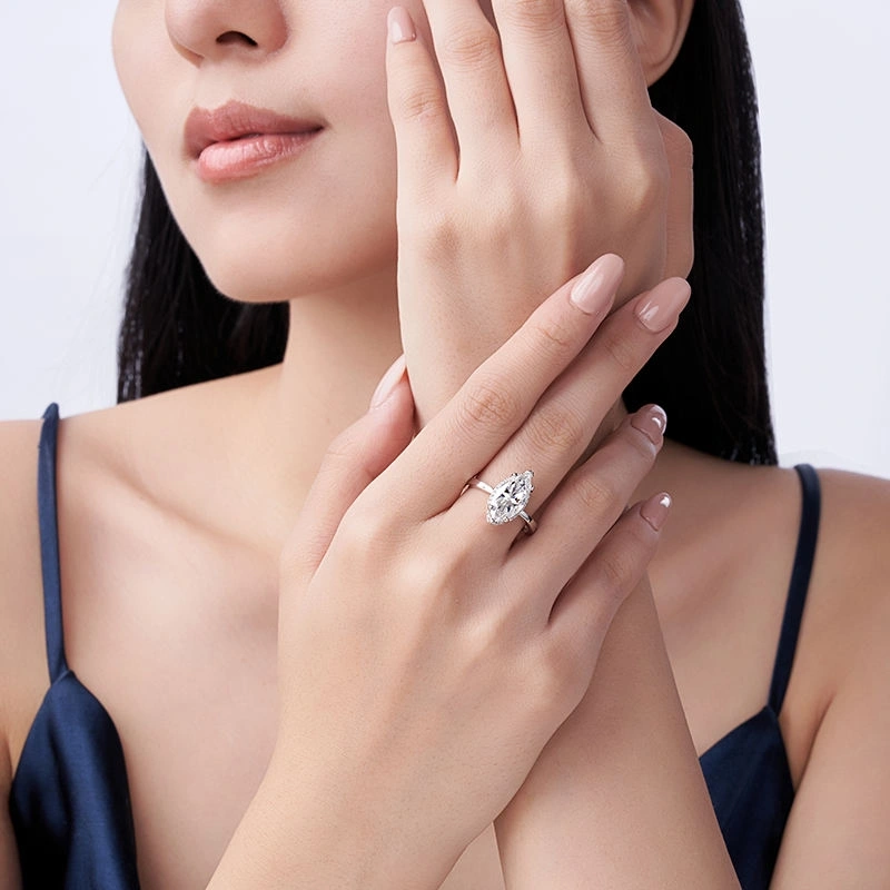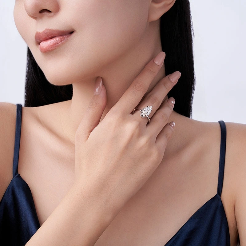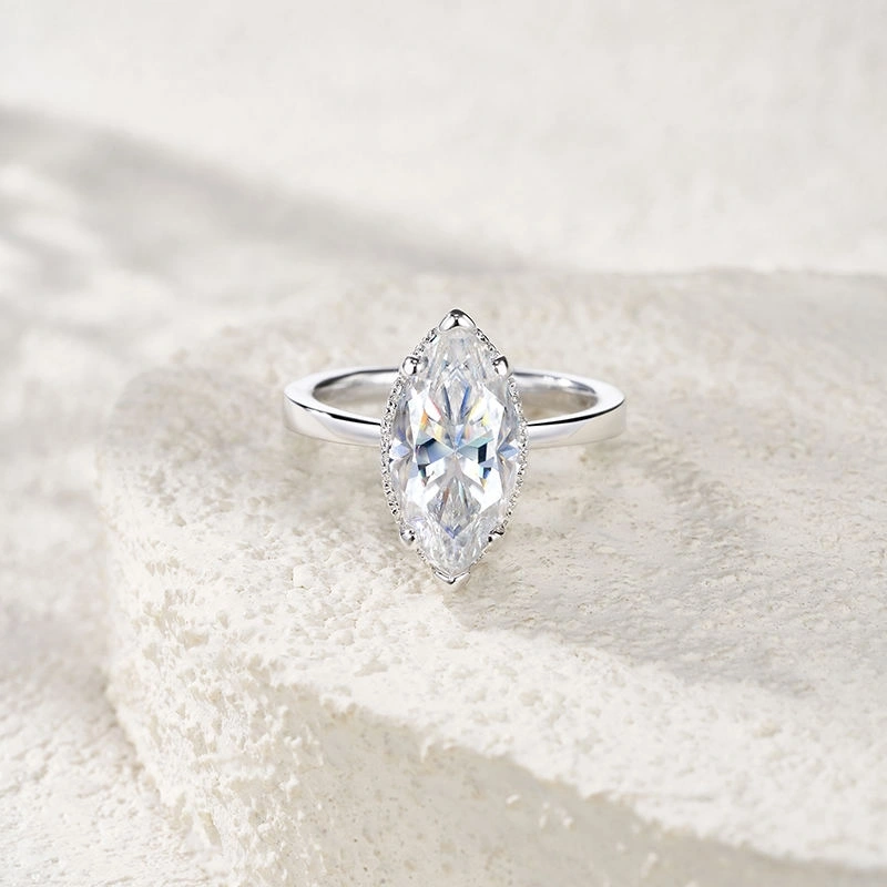Graceful and timeless, this Marquise Cut Moissanite Ring is crafted from premium S925 sterling silver, offering a refined balance of brilliance and elegance. The centerpiece features a stunning marquise-cut moissanite, a shape celebrated for its elongated silhouette that enhances sparkle while creating a flattering, slender look on the finger.