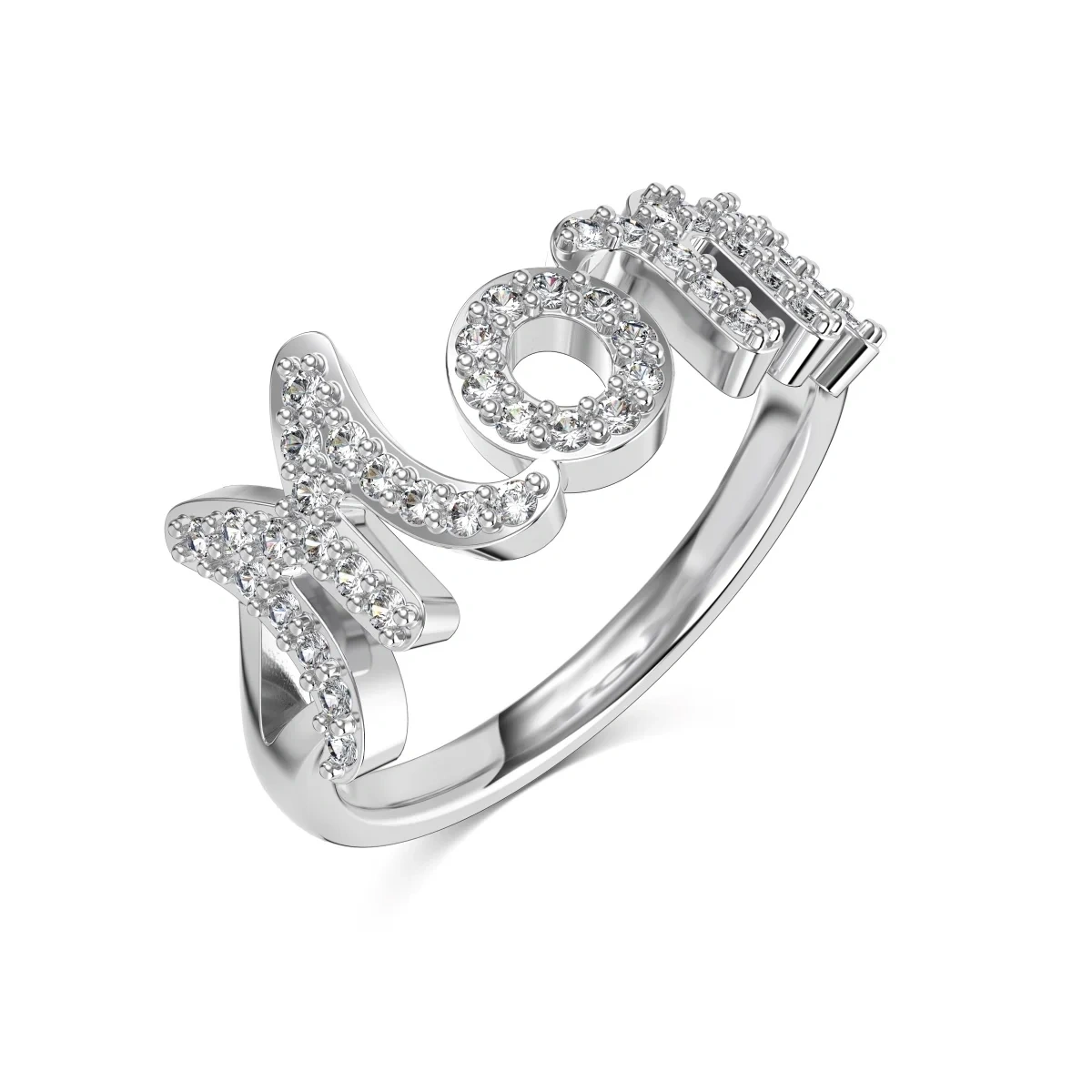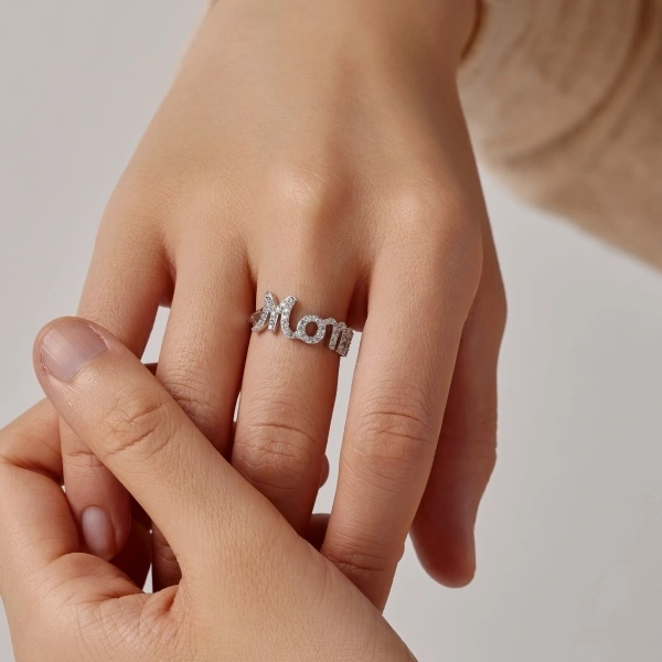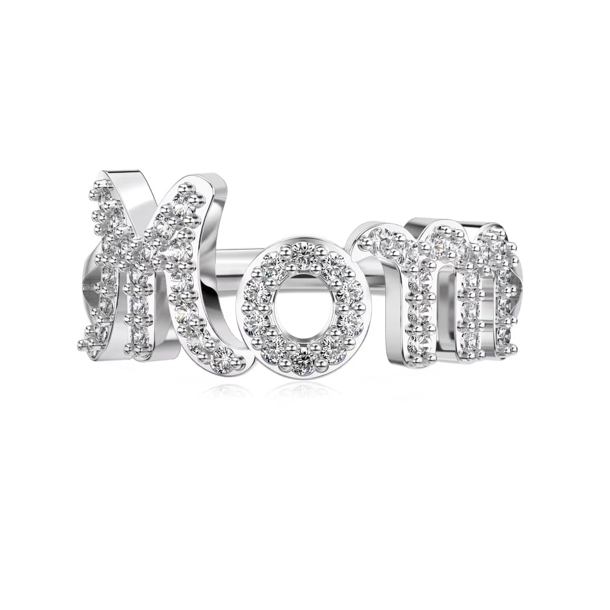 Celebrate love and appreciation with the Silver “Mom” Letter Design Ring — a meaningful piece designed to honor the most important woman in your life. Featuring a beautifully crafted “Mom” script, this ring is delicately accented with sparkling Swarovski stones for an elegant touch of brilliance.