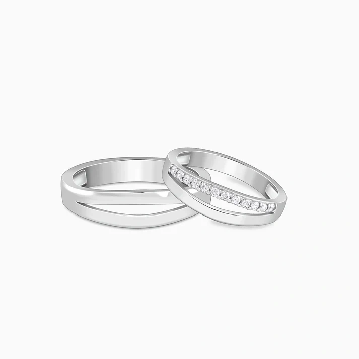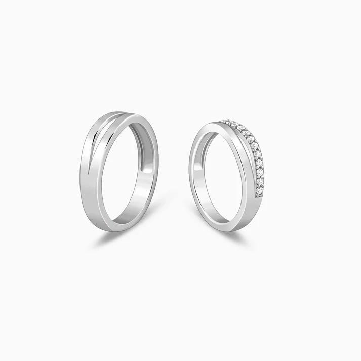 Refined yet bold — this silver rings for couples features a sleek band adorned with shimmering zircons, offering everyday elegance with a hint of edge
