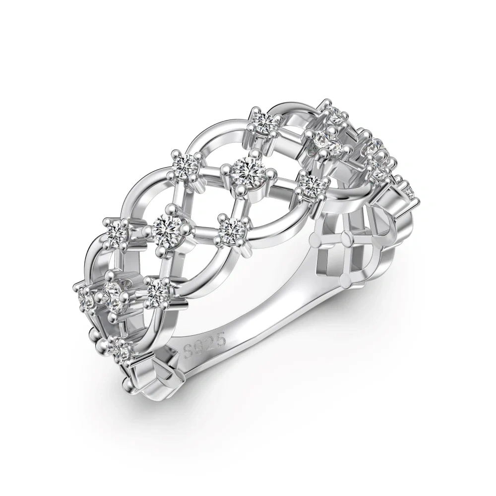Elevate your style with the Swarovski Lattice Ring, a masterful blend of timeless elegance and modern design. Crafted in 925 sterling silver, the ring features an intricate lattice pattern studded with sparkling Swarovski crystals, catching light from every angle for a radiant shimmer.