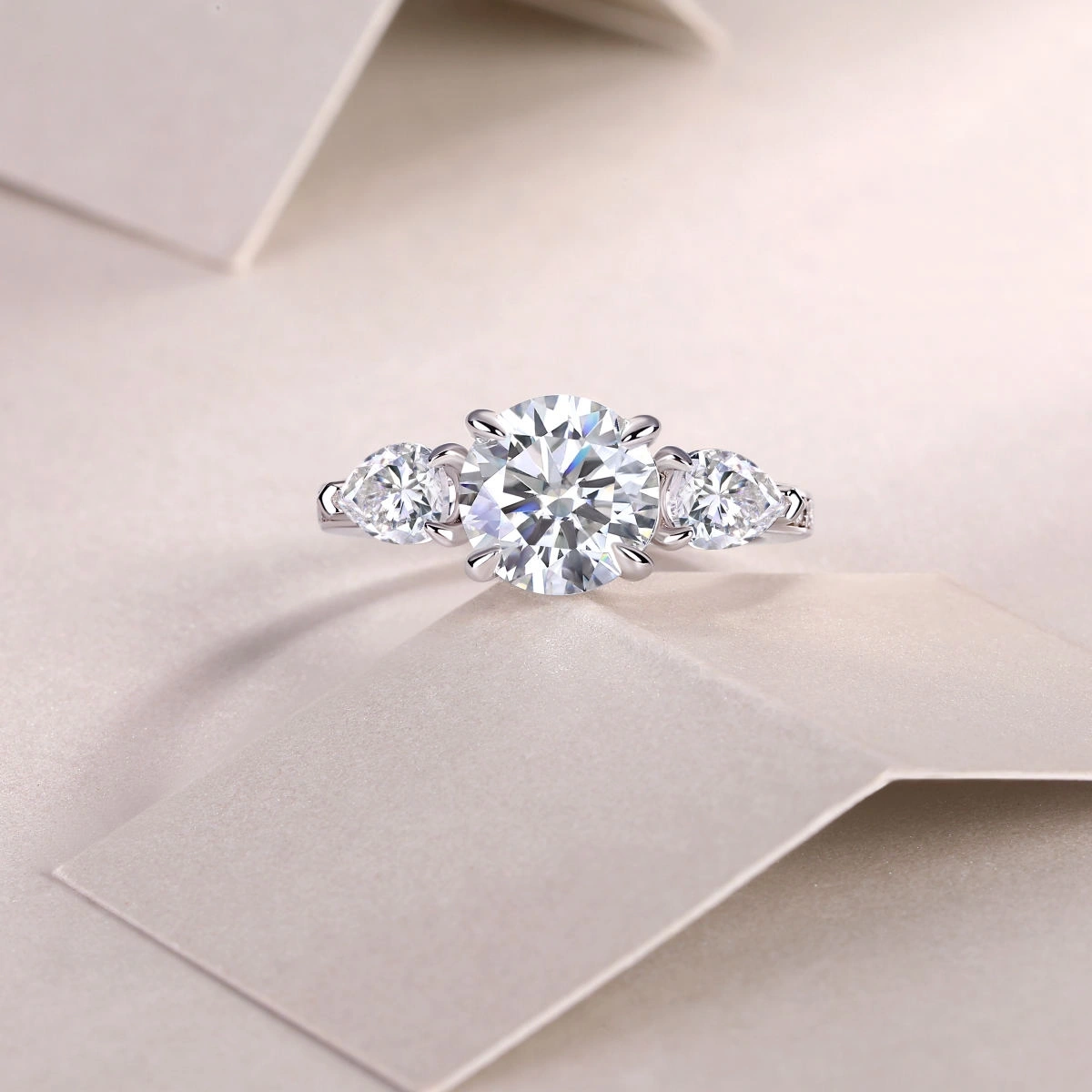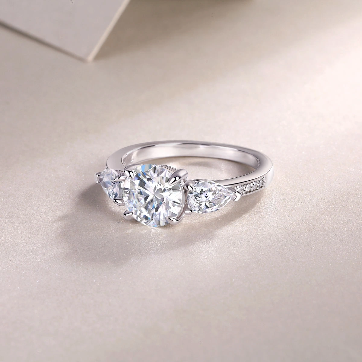 Elegant and symbolic, this Three-Stone Moissanite Ring is crafted from premium sterling silver and designed to celebrate love, balance, and timeless beauty. Featuring three sparkling moissanite stones set side by side, the design represents the past, present, and future—making it a meaningful choice for engagements, anniversaries, or special occasions.